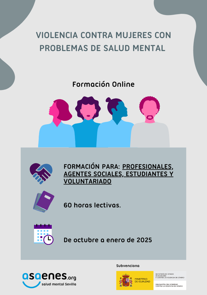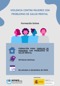 Asaenes ofrece cuatro cursos formativos online gratuitos, con plazas limitadas: una formación dirigida a mujeres con problemas de salud mental; otra dirigida a hombres con problemas de salud mental; una tercera formación familiares de personas con problemas de salud mental; y una cuarta formación dirigida a profesionales, agentes sociales, estudiantes y voluntariado. Los cursos, con plazas limitadas, son los siguientes:
