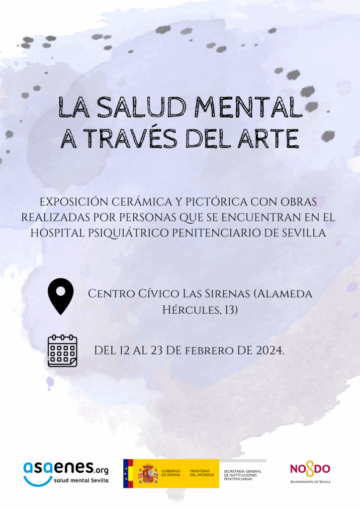 Del 12 al 23 de febrero tendrá lugar en el Centro Cívico Las Sirenas, la exposición “La Salud Mental a través del Arte”, un espacio social y cultural organizado por Asaenes Salud Mental Sevilla junto al Hospital Psiquiátrico Penitenciario de Sevilla para dar visibilidad a la Salud Mental, utilizando el arte como herramienta principal. La exposición podrá visitarse de lunes a viernes de 8:30 a 21:30 y los sábados de 9:30 a 14:30. El primer día de la exposición, el 12 de febrero, podrá visitarse a partir del mediodía.